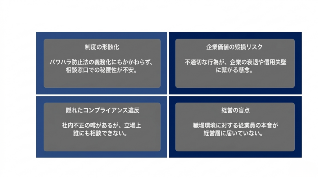 不正や不適切行為の多くは、内部からの情報によって早期に発見されるケースが少なくありません。しかし、社内では人間関係や心理的なハードルから通報をためらってしまい、問題が表面化するまで時間がかかる場合もあります。