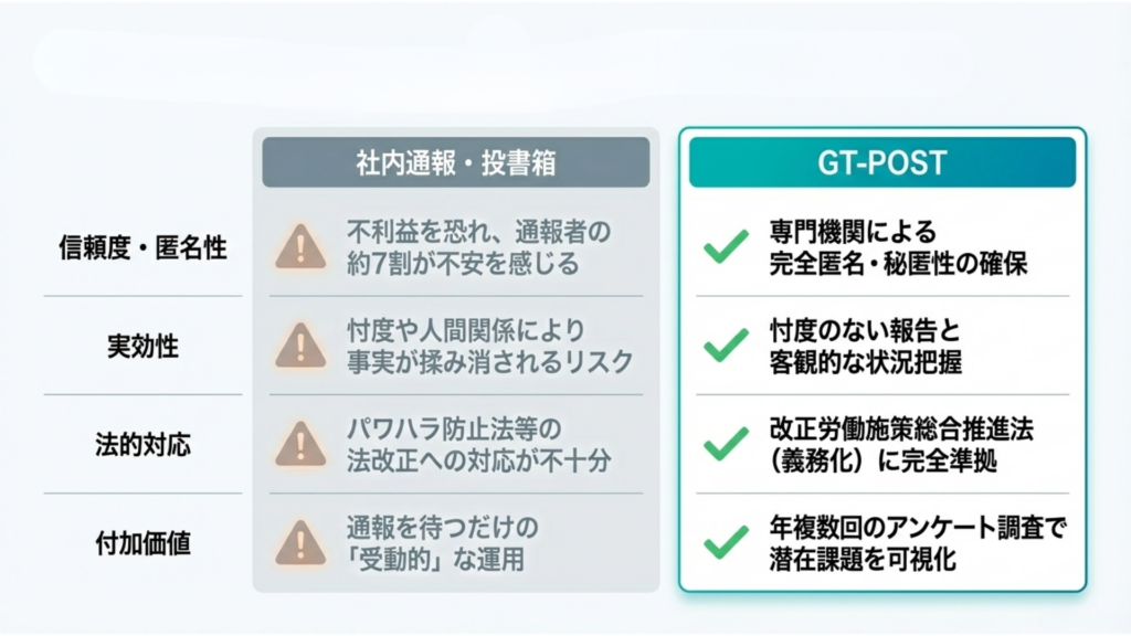 忖度のない第三者機関による 投書箱システム『GT-POST』